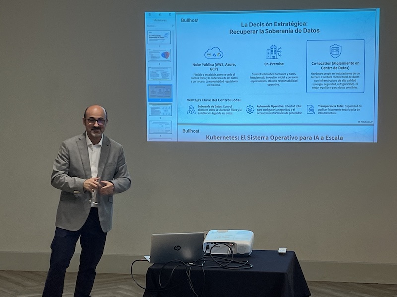 La sesión final, a cargo de Luis María Sainz, Cloud Services & Data Centers Manager de Bullhost, se centró en cómo blindar esta potente infraestructura y garantizar el cumplimiento regulatorio en un entorno de IA.