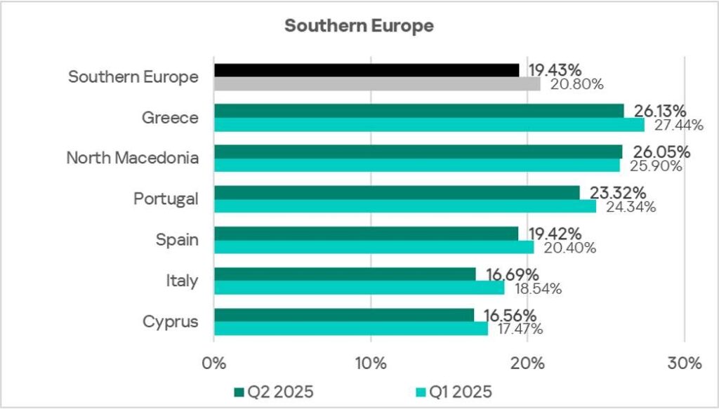 Esta estadística no es solo un número en un gráfico; es el síntoma de una fiebre que afecta a la competitividad de nuestro tejido productivo. Mientras el norte de Europa ha logrado blindar sus infraestructuras reduciendo la incidencia al 11,2%, España se mantiene en una peligrosa zona media ocupando la cuarta posición en la tabla de riesgo del sur de Europa, una lista encabezada por Grecia (26,1%) y Macedonia del Norte (26,0%), alineada con la realidad del sur del continente, donde la convergencia entre las redes de oficina (IT) y las de planta (OT) se ha realizado, en demasiadas ocasiones, a una velocidad superior a la de su protección.